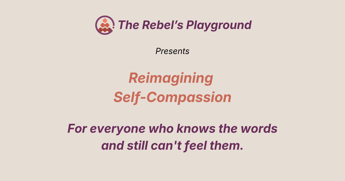If you’d like to go deeper now, there’s a space called the Rebel’s Playground where I’m building the fuller conversation. You’ll find the free audiobook of my first book, Rewilding Your Soul: A Rebel’s Guide to Being Human in a World Gone Wild, in there — along with the beginnings of a quieter room called the Self-Compassion Lab, which I’ll be opening up over the next few weeks. It’s a space, not a practice. For everyone who knows the words and still can’t feel them.